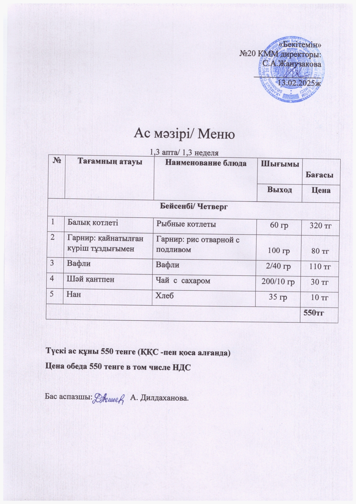 Ас мәзірі » СШ №20