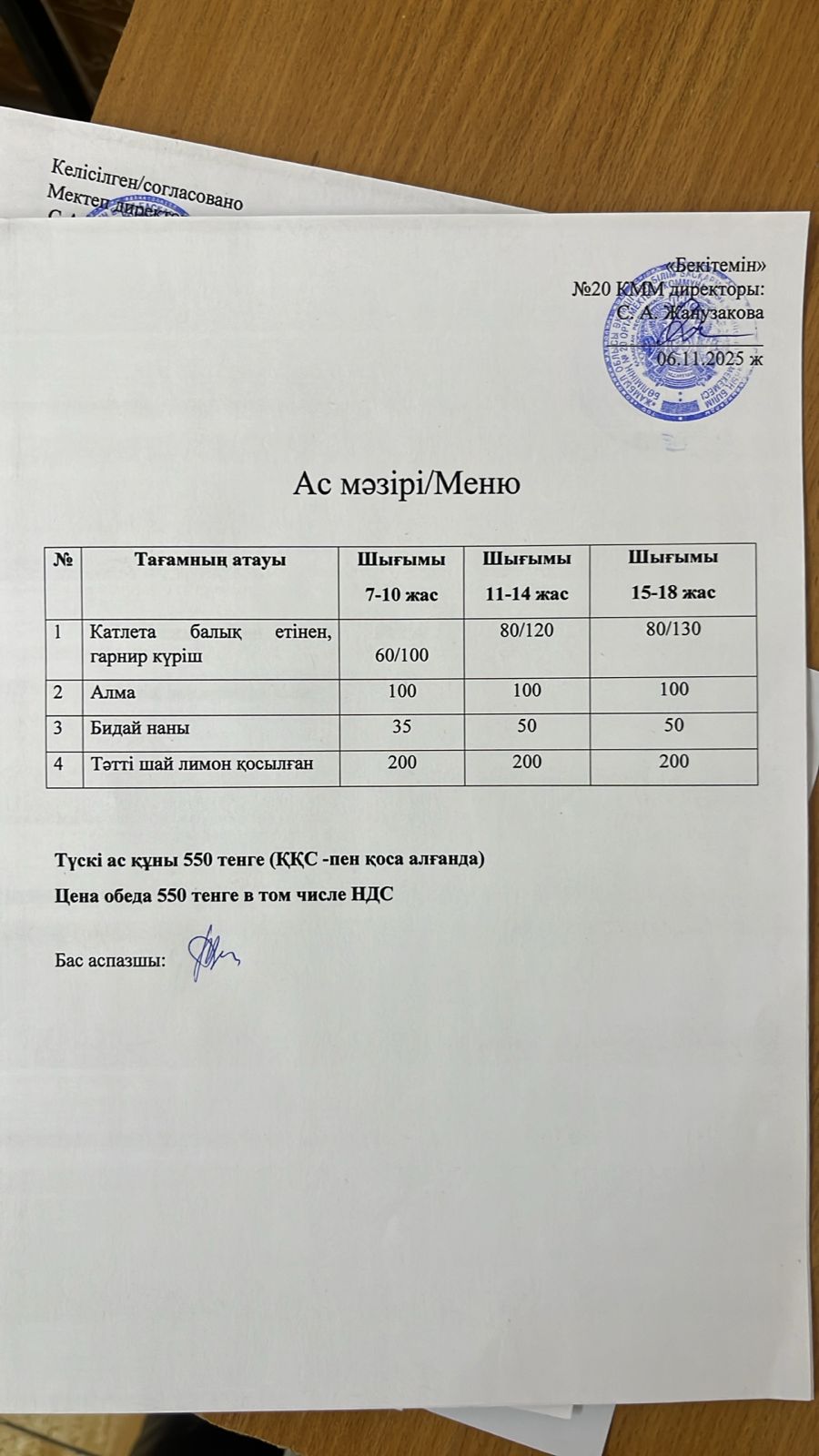 Ас мәзірі 06.11.2025ж. » СШ №20