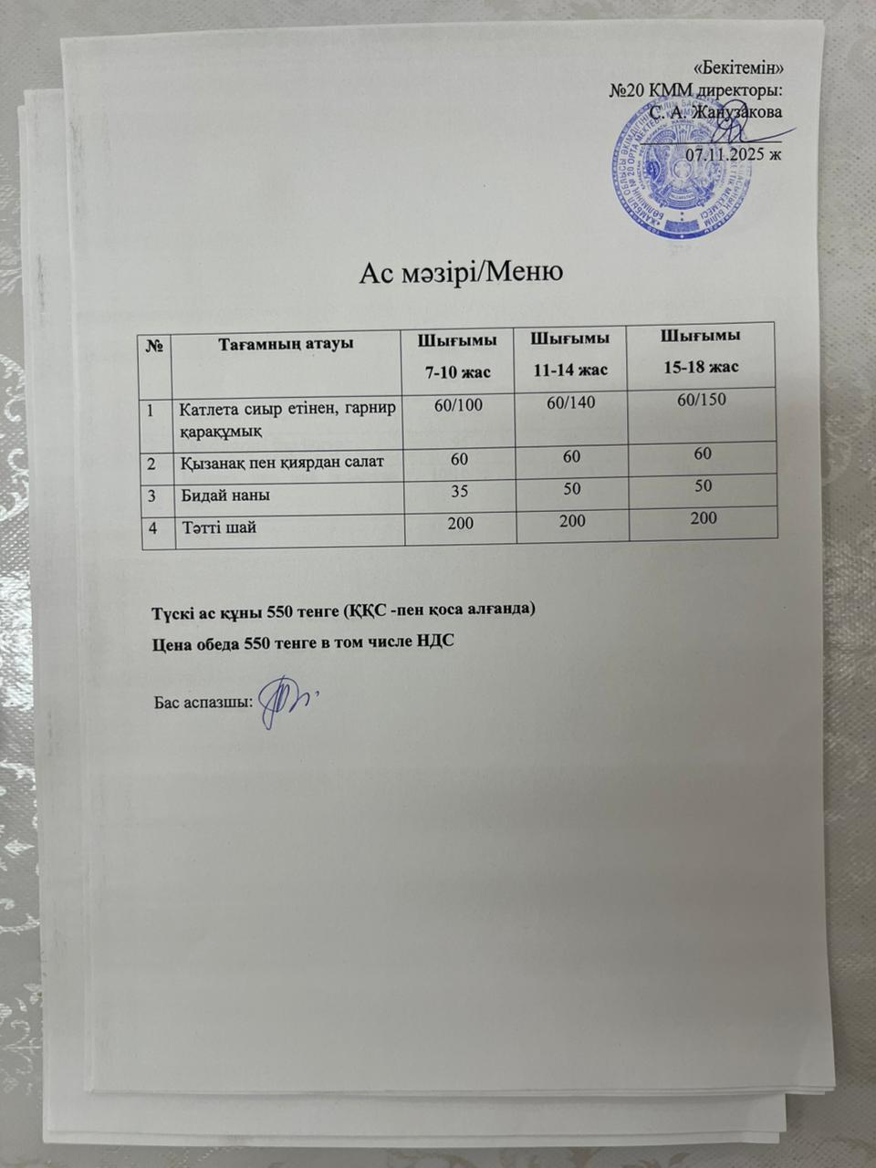 Ас мәзірі 07.11.2025ж. » СШ №20