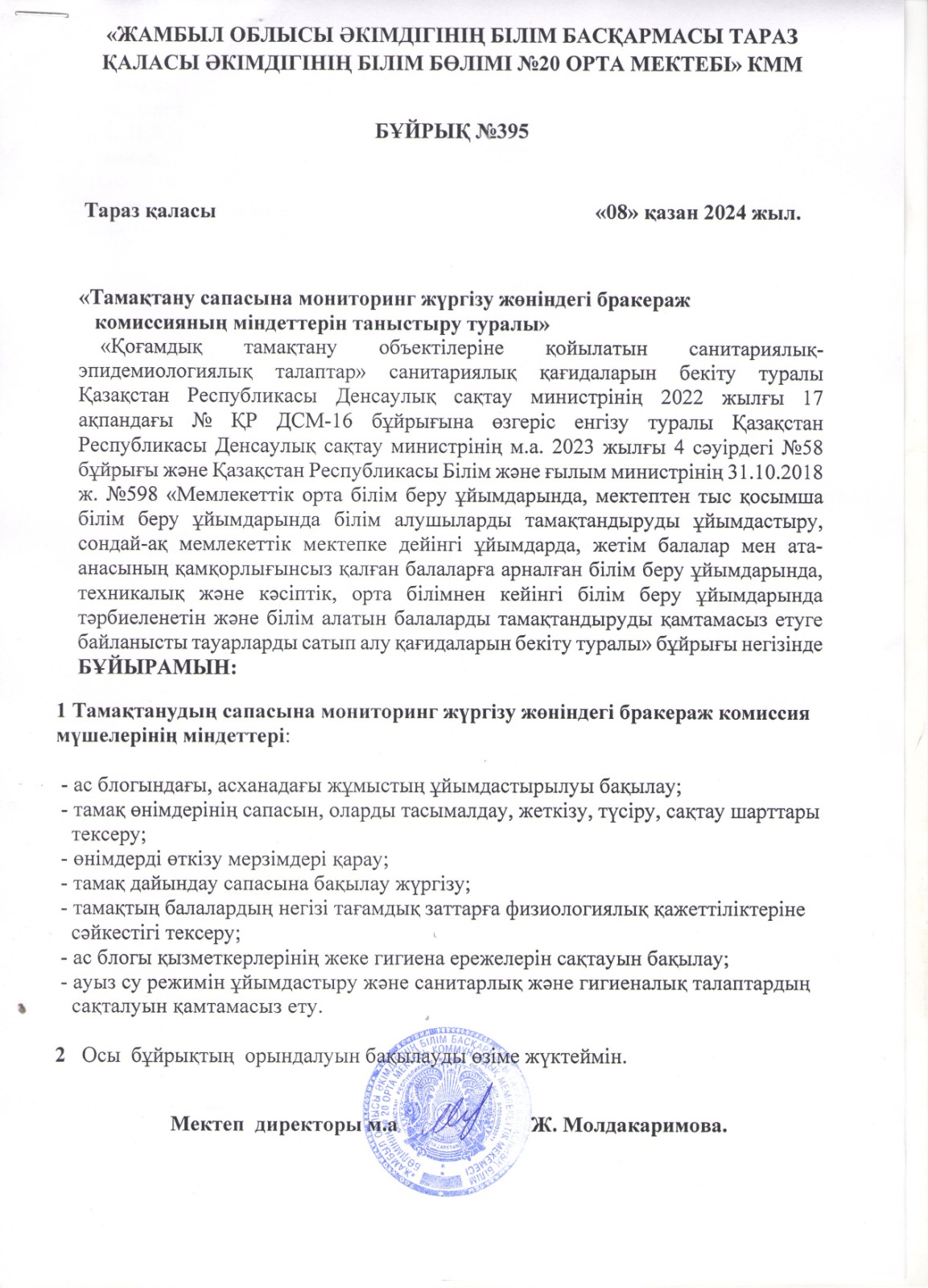 08 қазан 2024 0 1 2 3 4 5 Тамақтану сапасына мониторинг жүргізу жөніндегі бракераж комиссиясының міндеттерін таныстыру туаралы